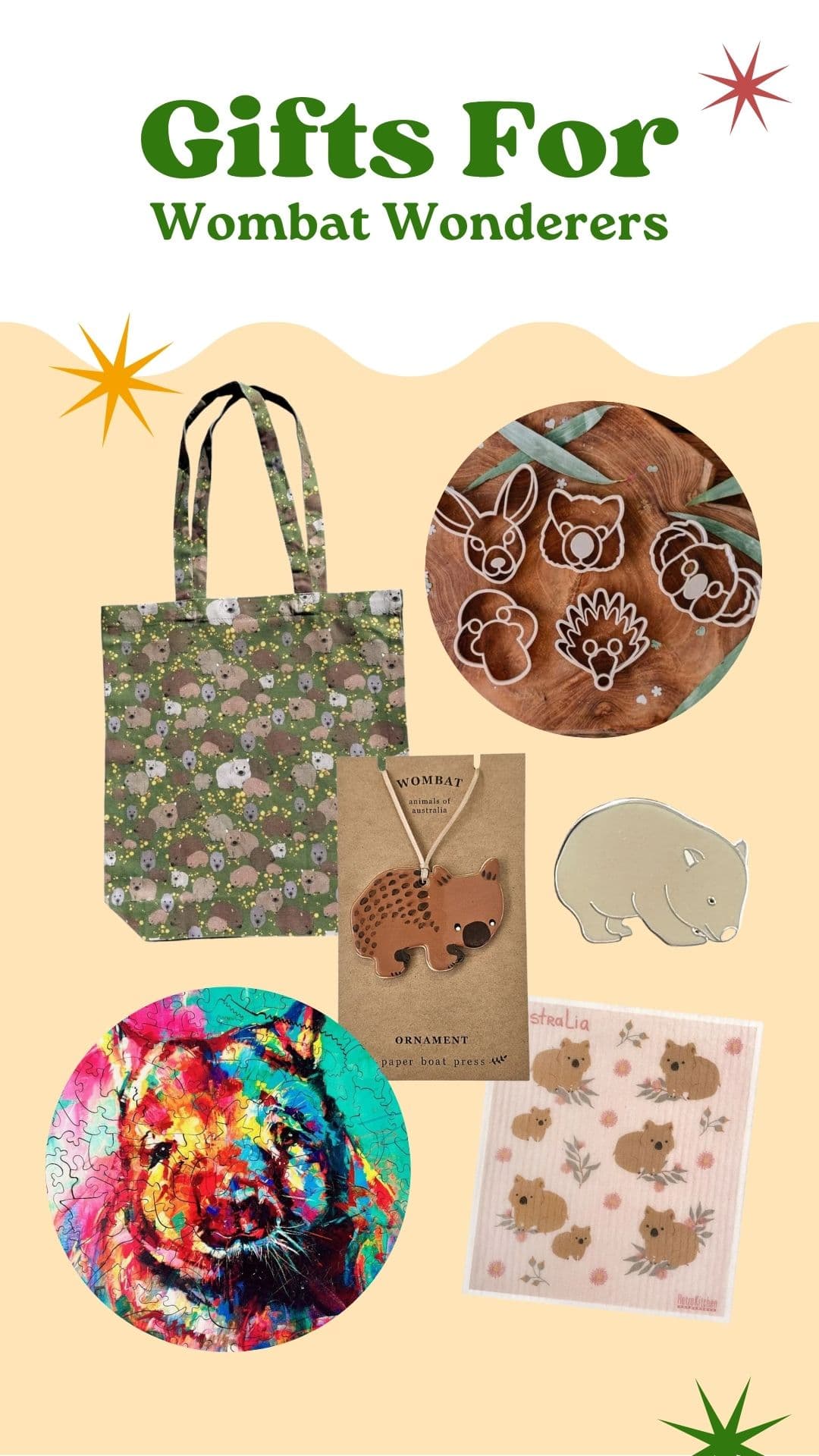 Top picks include the wooden jigsaw puzzle, comfy wombat-themed socks, enamel pins, tea towels, tote bags, greeting cards and bookmarks. These make lovely gifts for wildlife lovers and support small, sustainable makers.