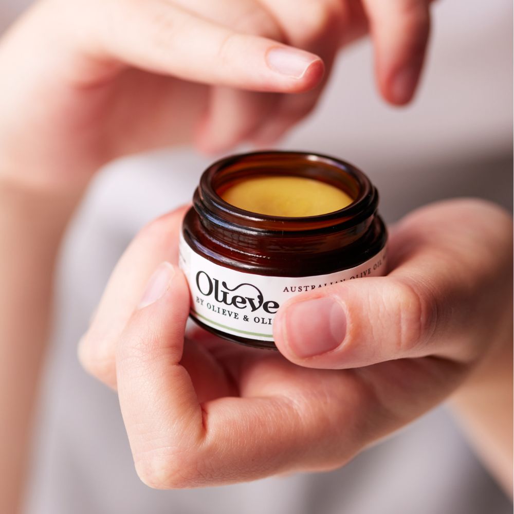 Olieve Vanilla Lip Balm. Olieve lip balm nourishes, soothes and protects winter lips with organic oils, beeswax, natural cocoa and shea butters. Sensational natural vanilla taste. Contains honey, pure vanilla oil and mandarin essential oil. Delicious! Glass jar with screw lid. 15ml.